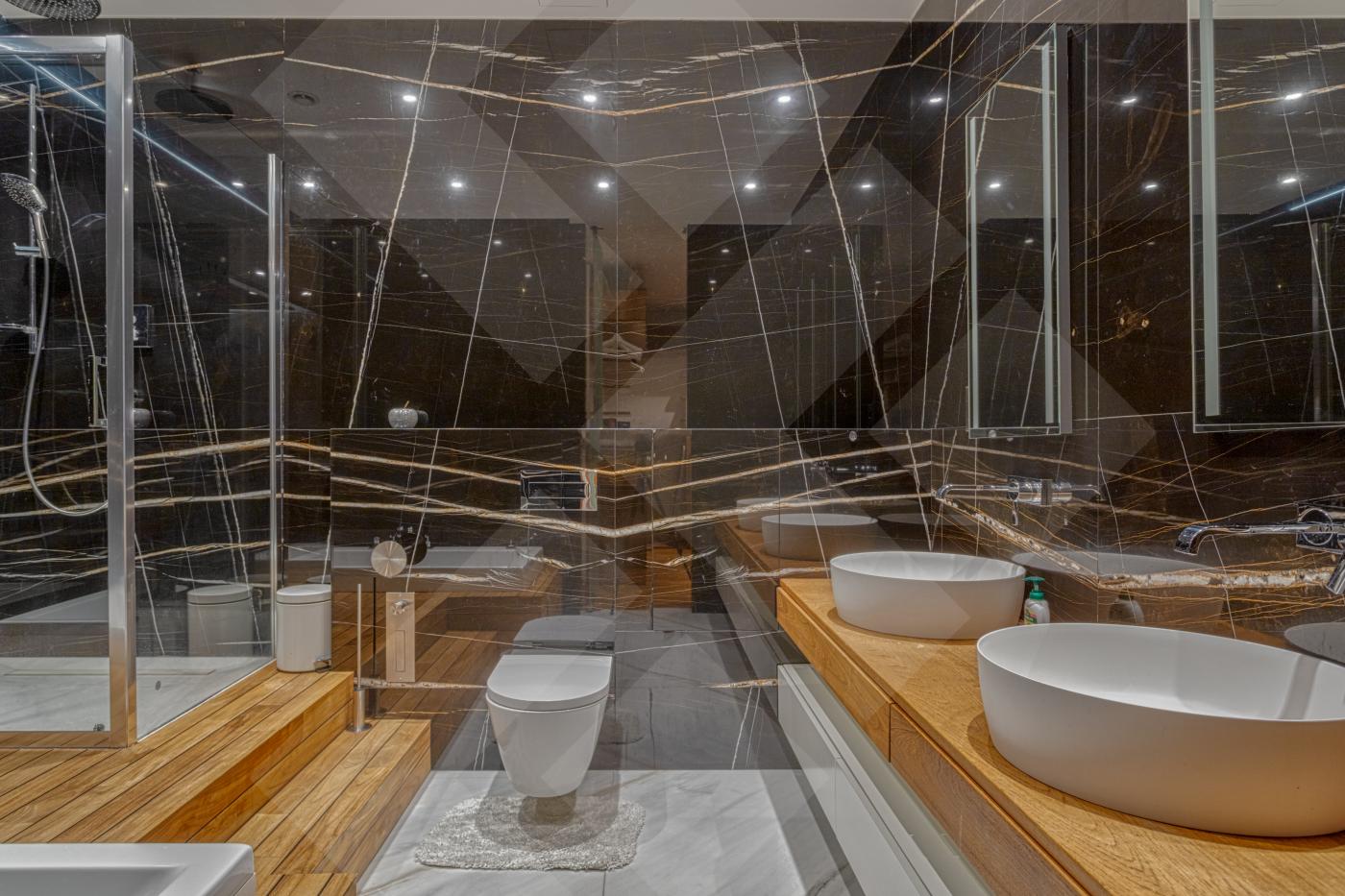 В квартире предусмотрена следующая планировка: просторная кухня-гостиная, мастер-спальня с гардеробной и санузлом, детская/спальня, балкон, гостевой санузел и холл.