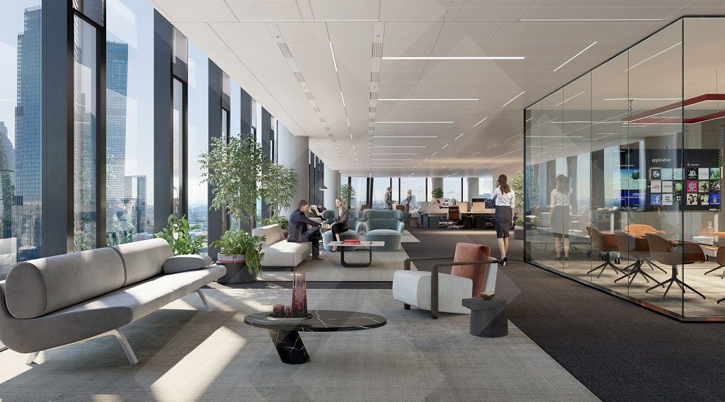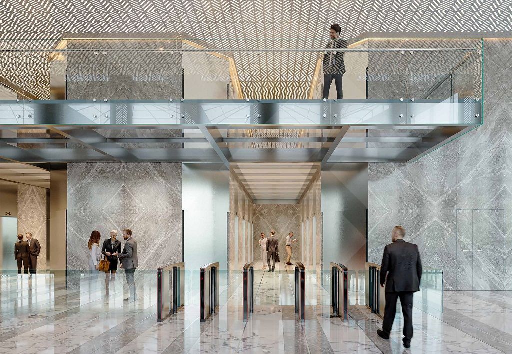 Помещение свободной планировки, отделка shell & core, высота потолков 3.7 м., биометрический доступ в здание, доступ к сервисам через мобильное приложение, оптимизация офисного пространства на основе тепловых карт и многое другое.