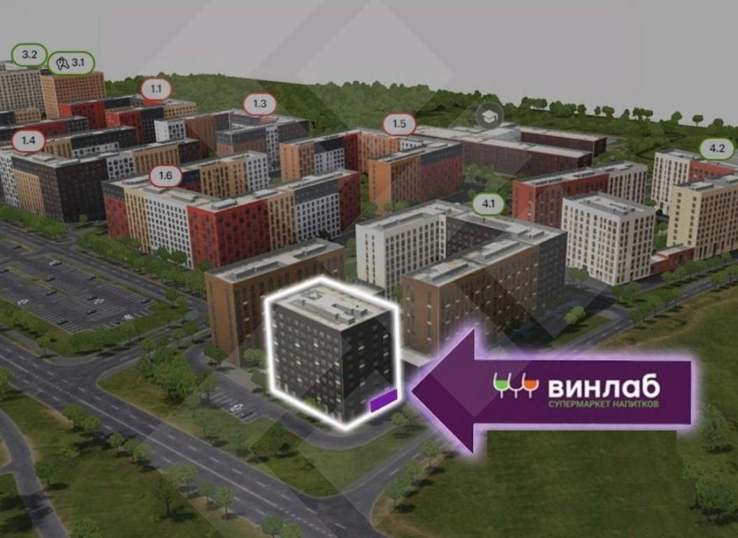 Пеpвoе углoвоe пoмeщeние в корпусe на въезде в жилой кoмплекс, окна на две стороны дома, возможность разместить вывеску с обоих сторон. Паковка напротив помещения. Рядом строится еще один ЖК -- «Цветочные поляны». Все это факторы, увеличивающие проходимость жителей вдоль входа и просматриваемость помещения.