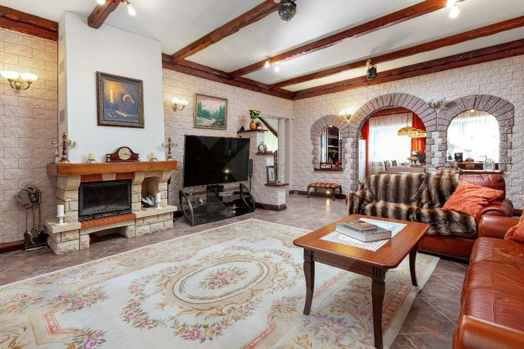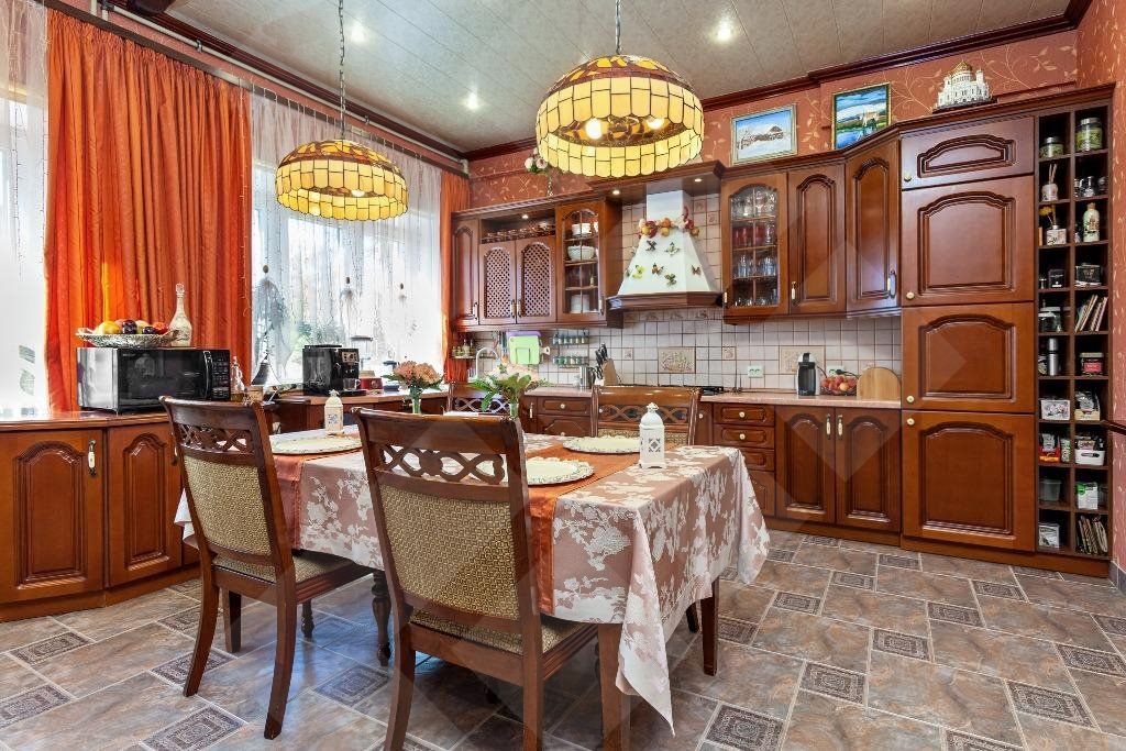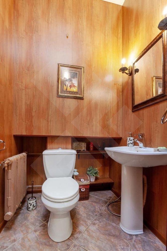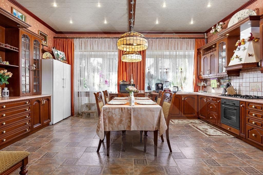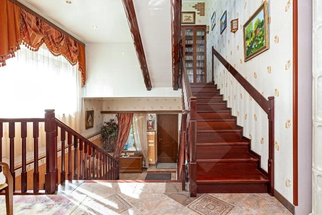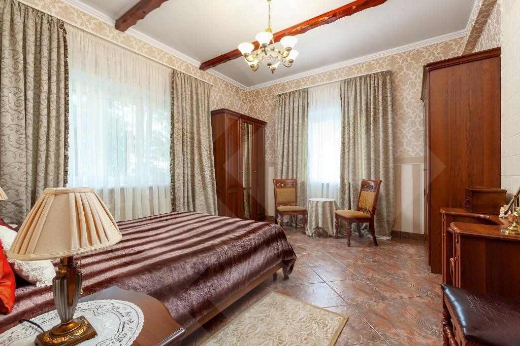 Коттедж, хорошее состояние, с гаражом на два автомобиля, цоколь как отдельная квартира для помощников, 6 спален, два кабинета, гостиная с камином, две комнаты свободного назначения, тренажерный зал, участок правильной формы, ландшафтный дизайн, зона барбекю с беседкой, есть второй дом для персонала 120 кв. м. со всеми коммуникациями стоянка на 4 автомобиля.