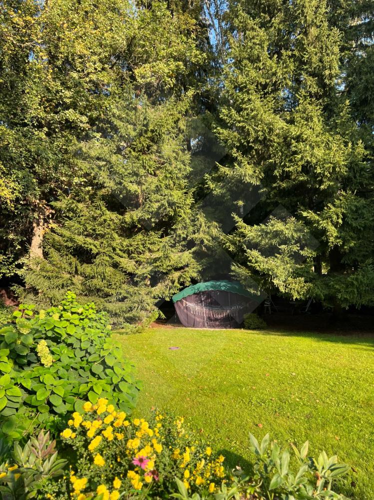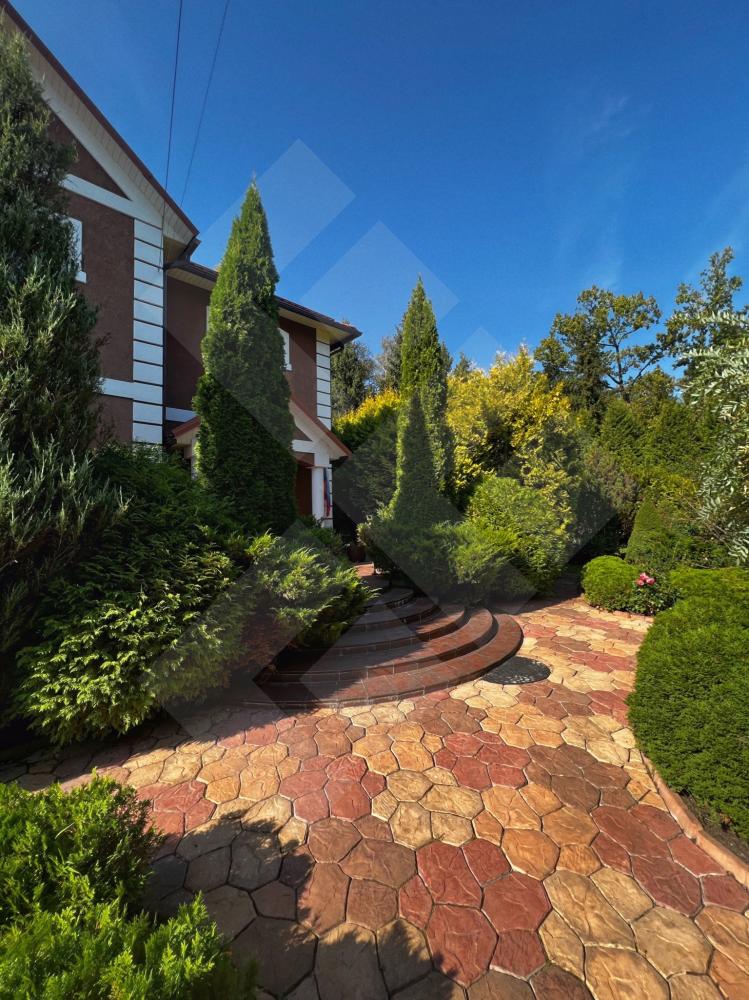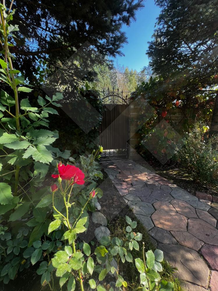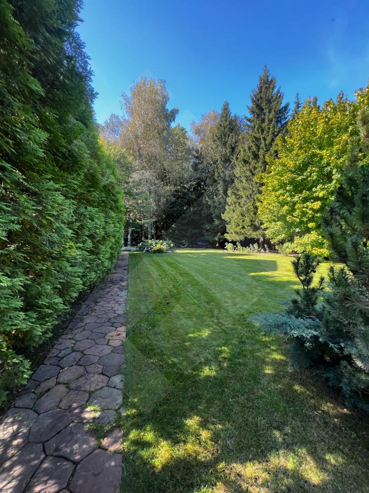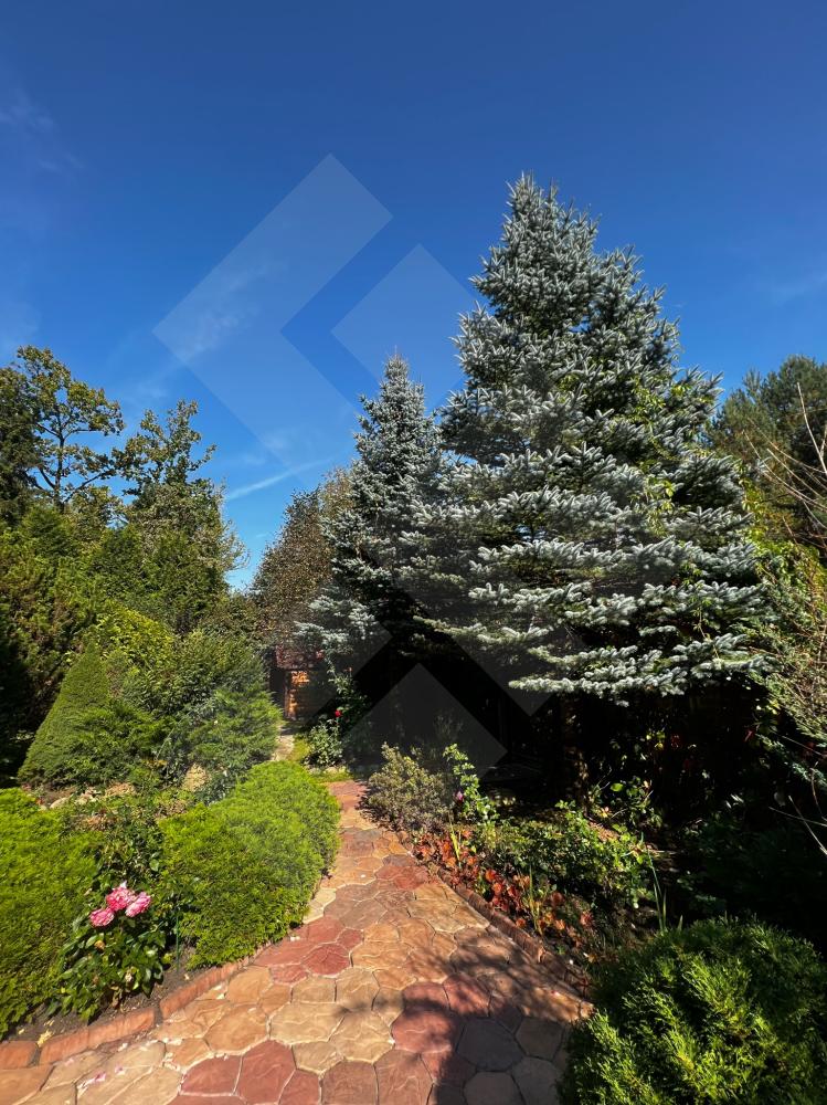 - много деревьев: есть плодовые, хвойные и ухоженный газон, большой розарий и пионарий;