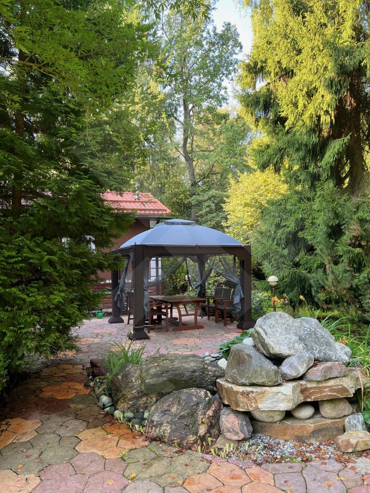 - на территории есть мангальная зона, пруд с водопадом, летняя беседка, зона отдыха в виде гамака и качели;
