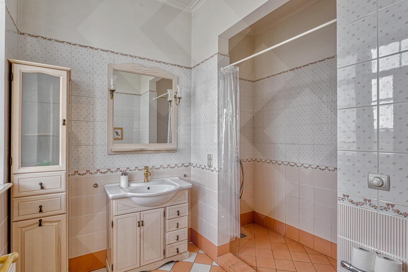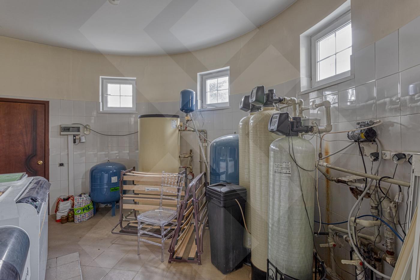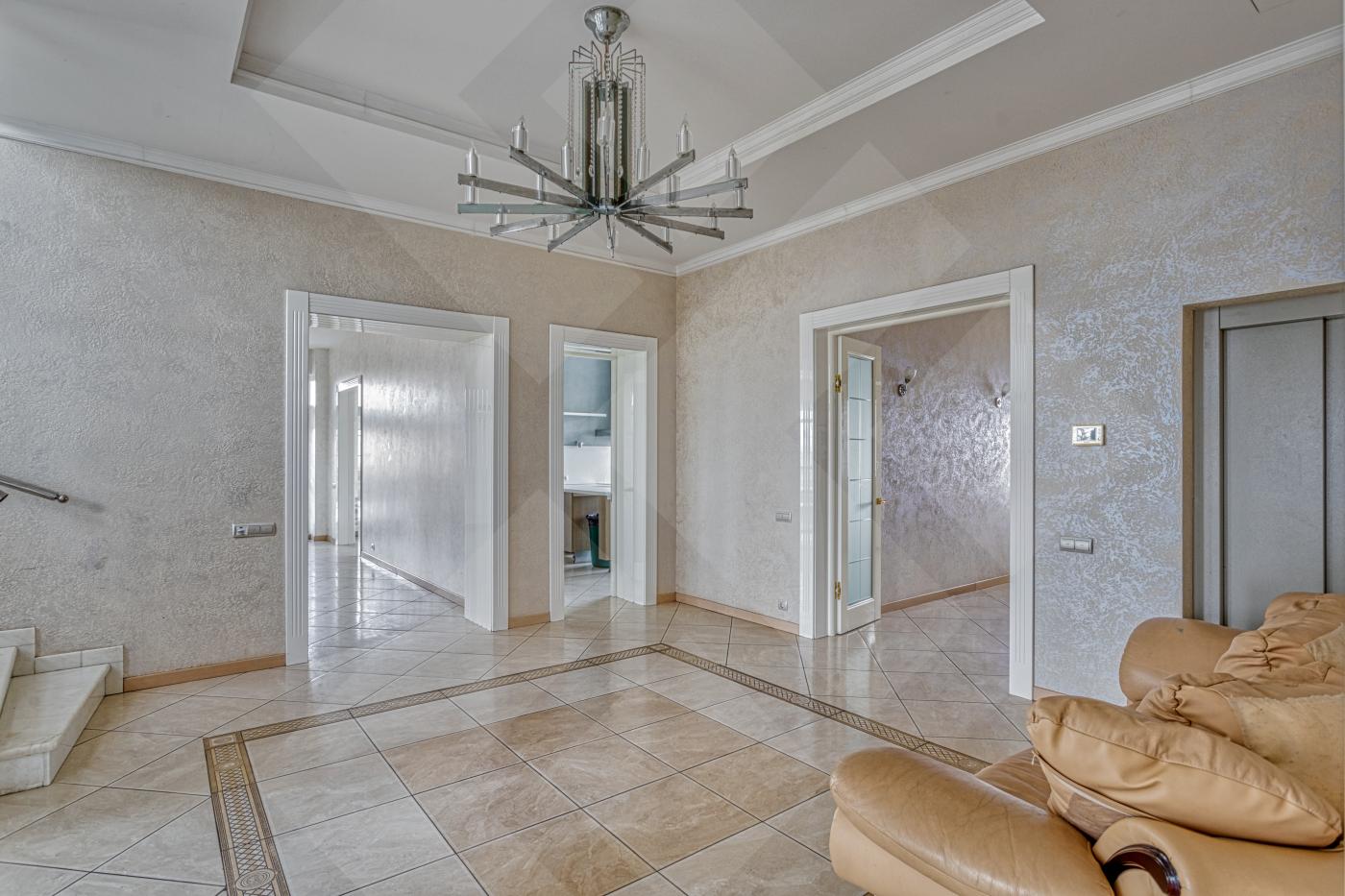 Полы паркетная доска и мраморная плитка, лестницы мрамор. Двери массив. Водяные теплые полы. Установлены 2 газовых котла De Dietrich, бойлер на 300 литров и система очистки воды. Во всех комнатах установлены кондиционеры. Окна: стеклопакеты ПВХ (2-х камерные, с раскладкой и порталами)