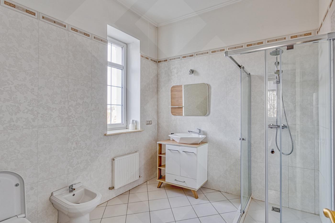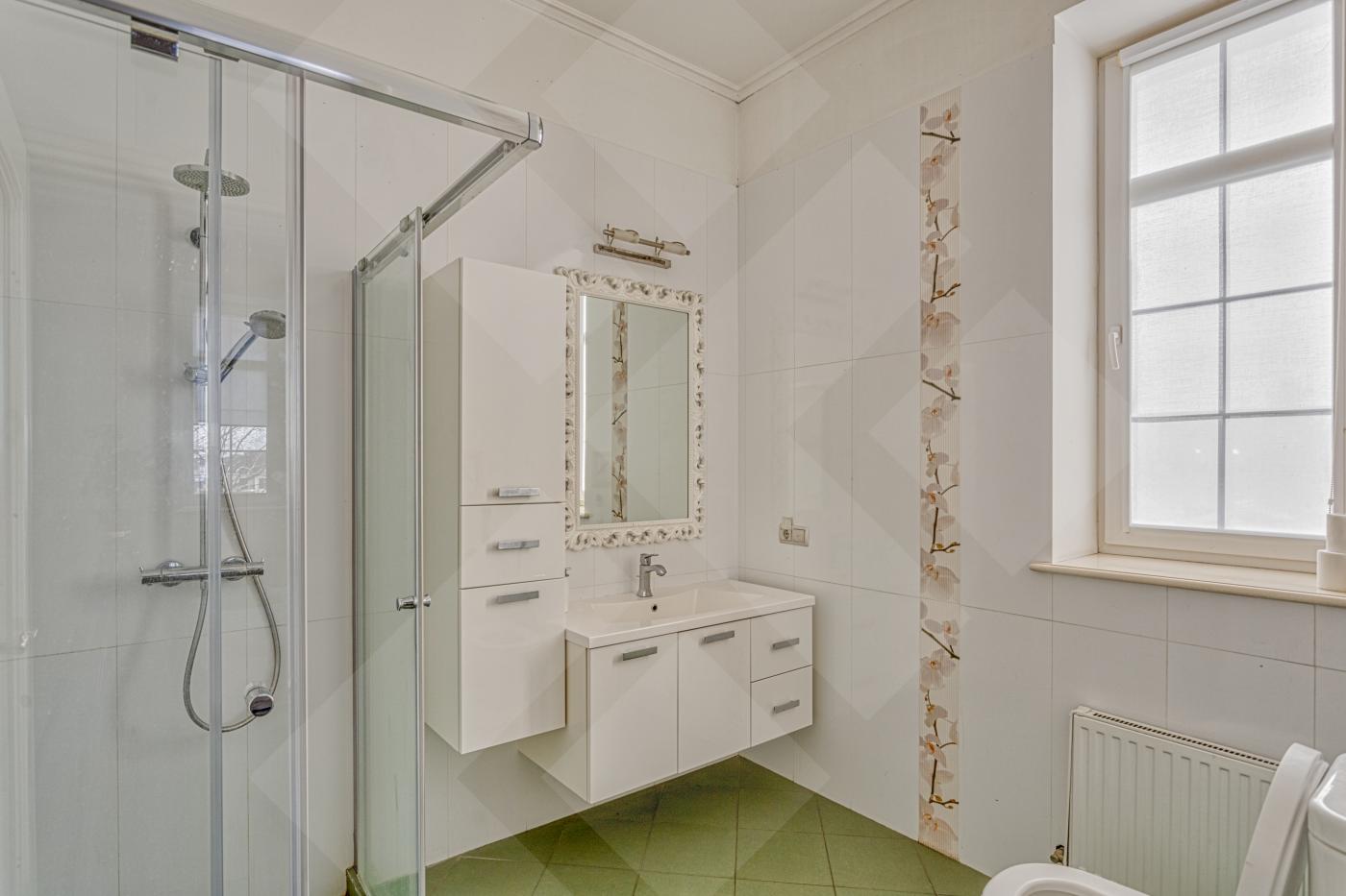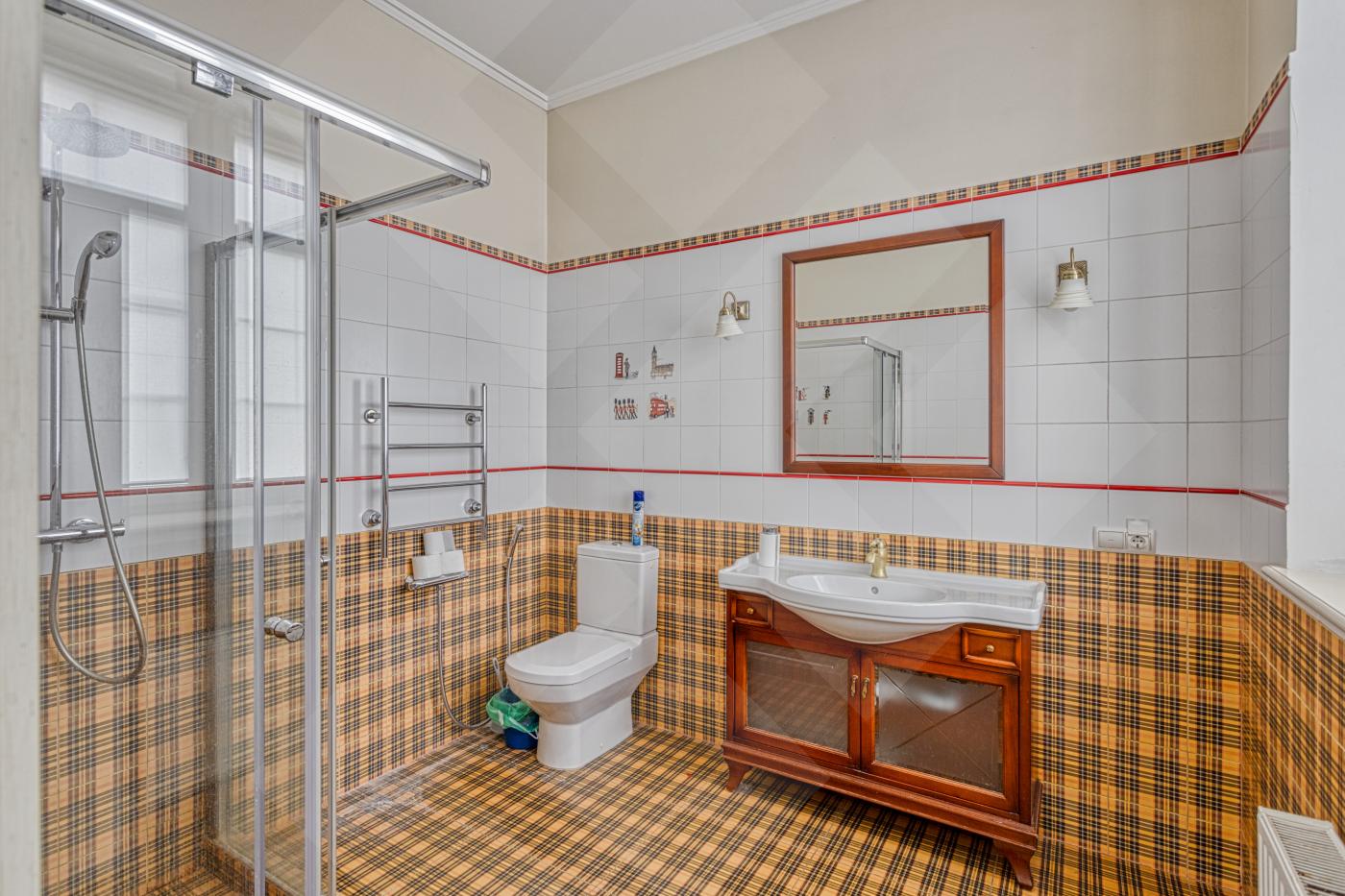 Полы паркетная доска и мраморная плитка, лестницы мрамор. Двери массив. Водяные теплые полы. Установлены 2 газовых котла De Dietrich, бойлер на 300 литров и система очистки воды. Во всех комнатах установлены кондиционеры. Окна: стеклопакеты ПВХ (2-х камерные, с раскладкой и порталами)