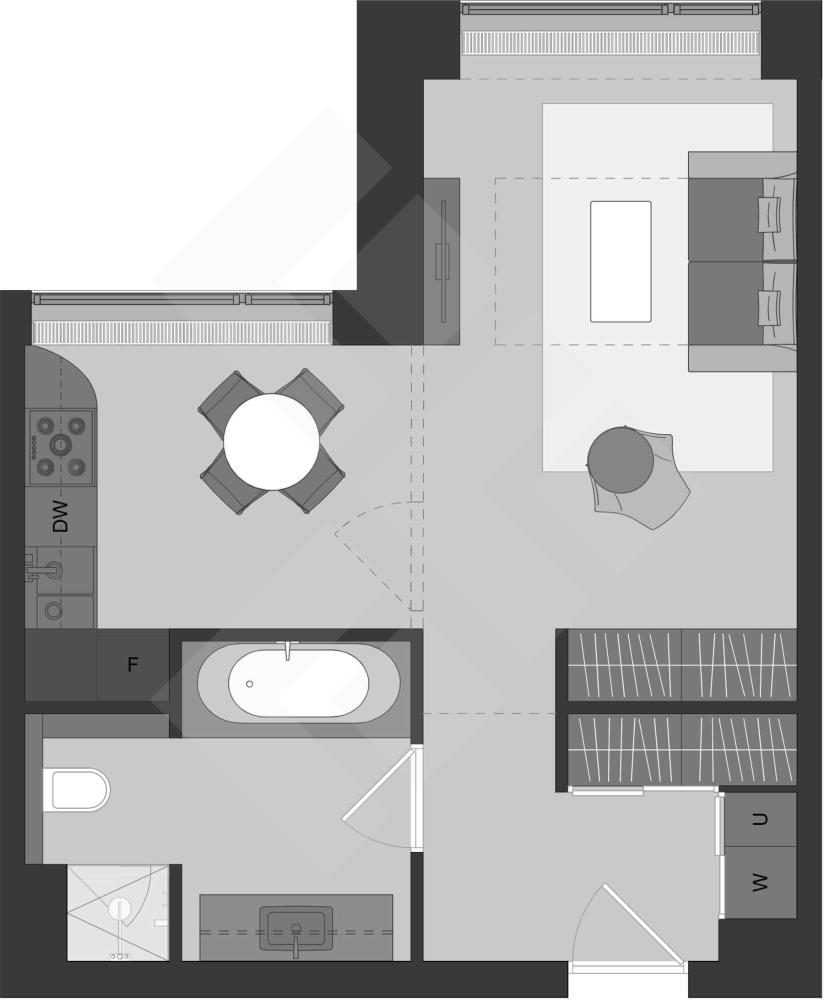 Квартира достаточно светлая, за счёт двух панорамных окон.