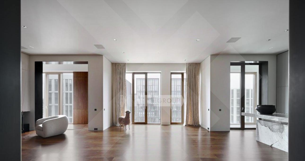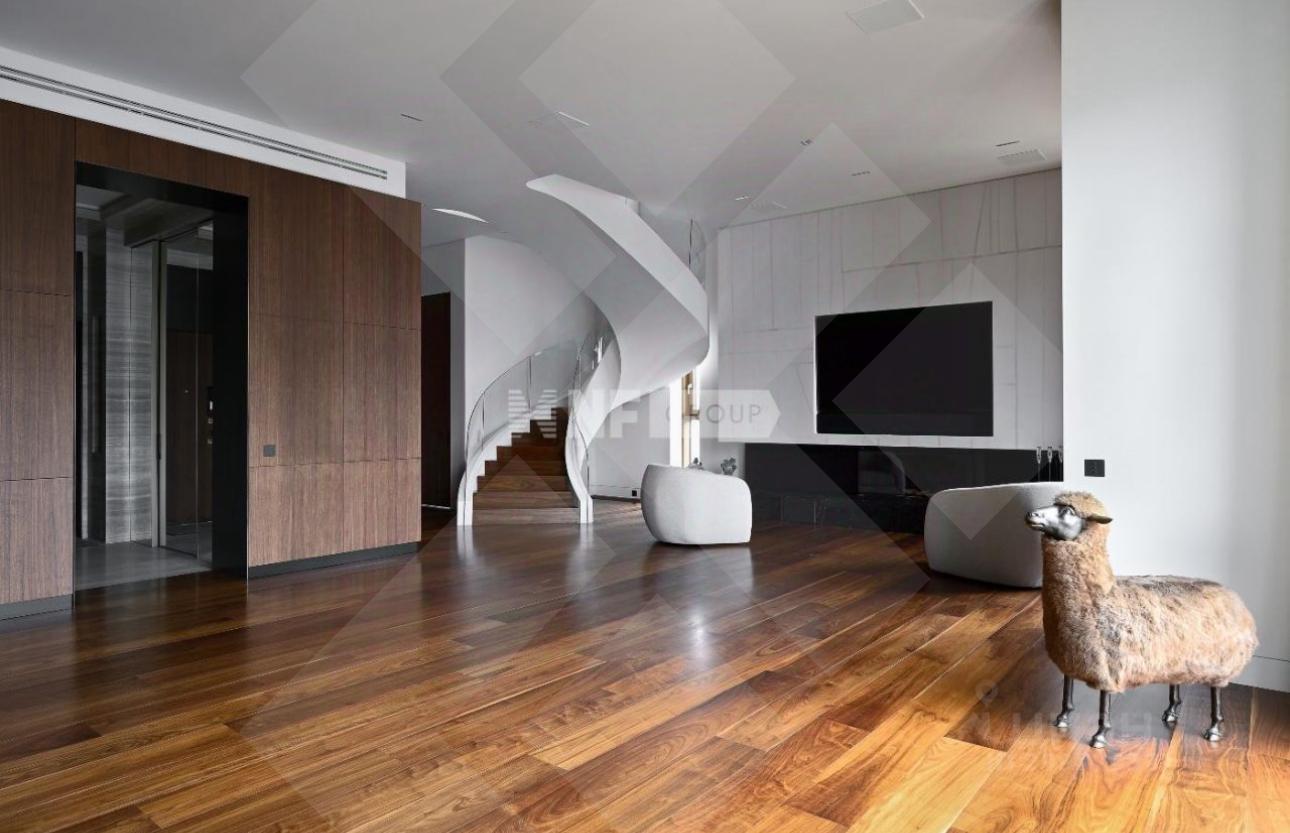 J59375 Двухуровневый пентхаус общей площадью 343 м² в комплексе премиум-класса "Садовые кварталы". Пентхаус с дизайнерской отделкой расположен на 11-м этаже. Выполнен современный ремонт с использованием ценных пород дерева и натурального камня. В гостиной установлен дровяной камин. Благодаря панорамным и мансардным окнам пространство наполнено естественным светом.
