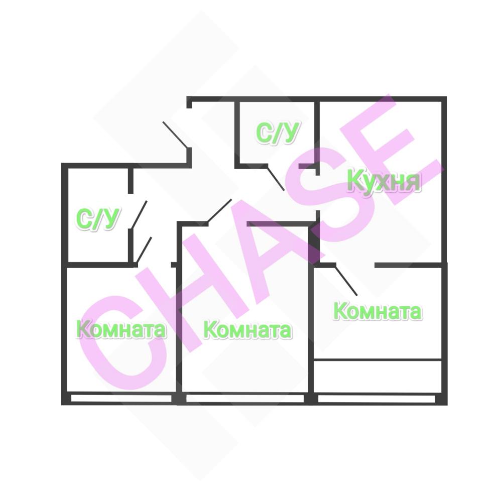 Планировочное решение: 3 изолированные комнаты и 2 совмещенных санузла.