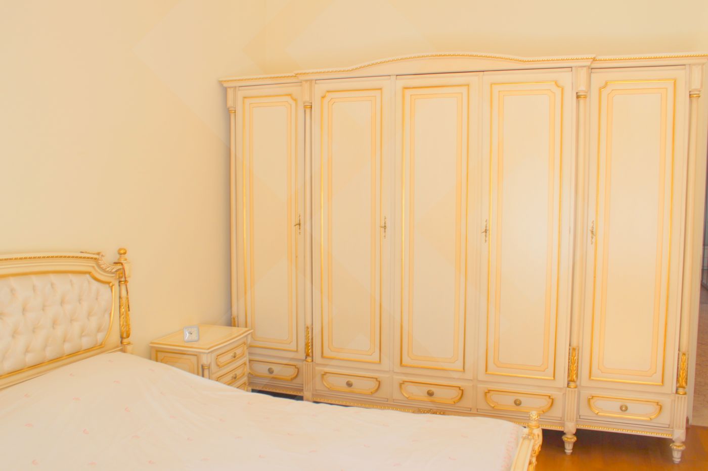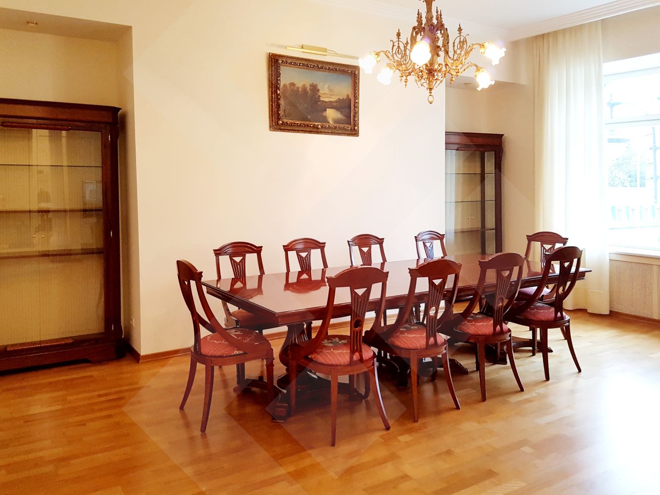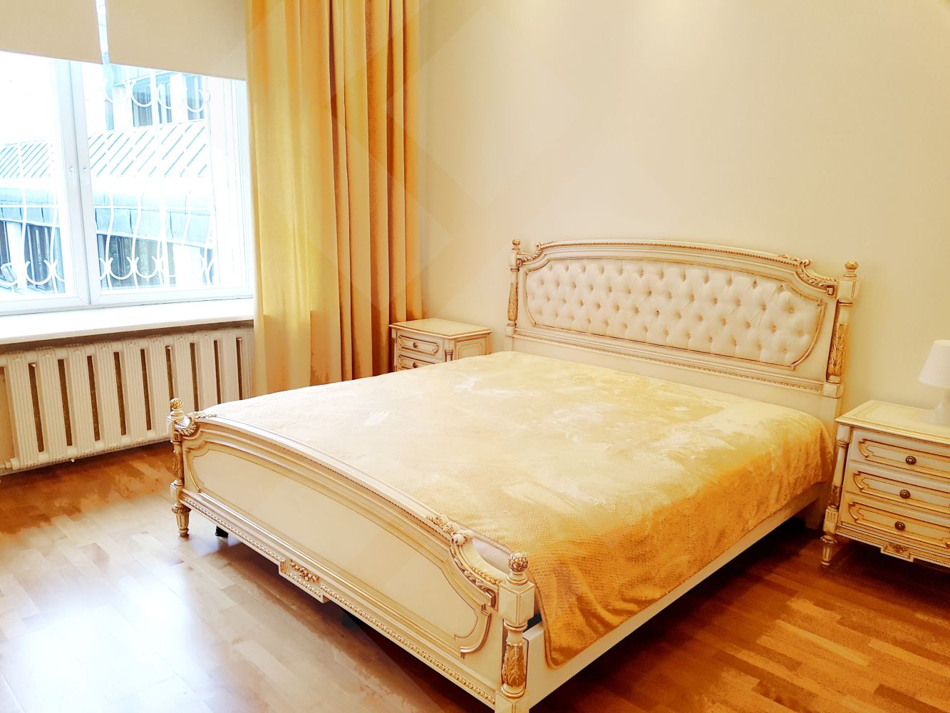 ID:1554 Агенту бонус!Предлагается четырехкомнатная квартира. Выполнен качественный ремонт. Встроенная кухня оснащена современной бытовой техникой от ведущих мировых производителей. Планировка: кухня-столовая (22м), гостиная (50м), три спальни (25-25-25), два санузла, гардеробная, лоджия. Квартира полностью меблирована. Пол: паркет (массив дуба), плитка (подогрев). Окна спален во двор. Высота потолков 3,5м. Презентабельная входная группа. Двор огорожен.