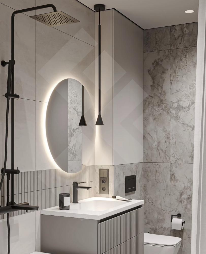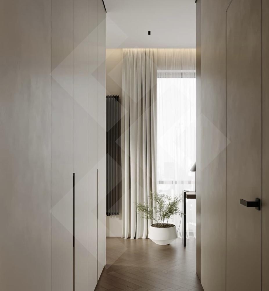 Потолки высотой 3 м. Стены —краска Johnstones, декоративная штукатурка, стеновые панели; полы — керамогранит, с/у-керамогранит; теневой натяжной потолок системы Krab; двери -invisible, высотой 2,40 м; мойка- Omoikiri, сантехника- Boheme и AM.PM, столешницы - кварцит; внутрипольные конвекторы, кондиционеры Hisense, Умный дом, биометрический замок на входной двери, встроенный сейф. Различные сценарии освещения и большое количество подсветок делают квартиру еще более привлекательной.