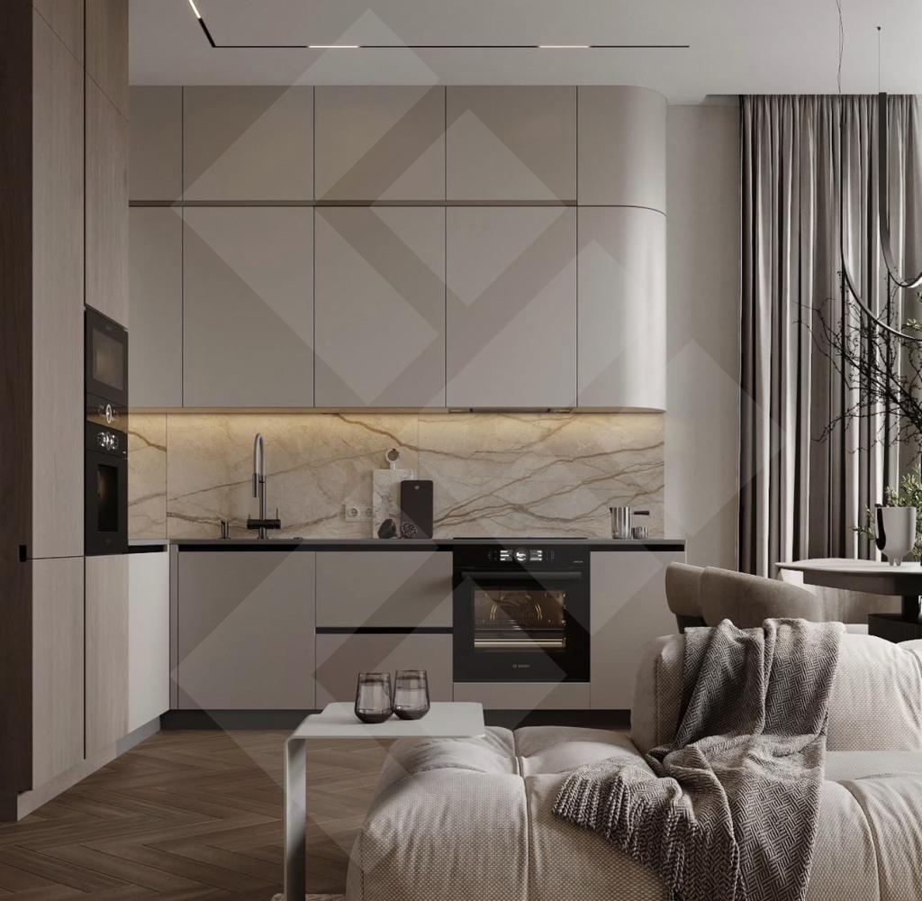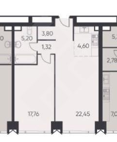 Удобное планировочное решение квартиры : просторная кухня-гостиная, уютная спальня с вместительным шкафом, гардеробная, совмещенный с/у с ванной и прихожая.