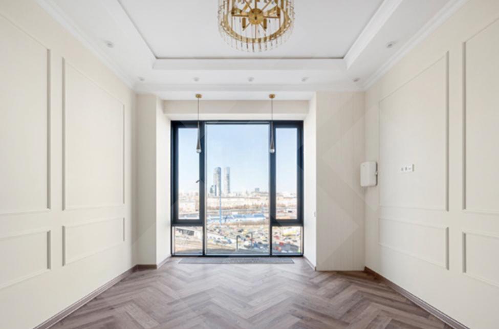 Из панорамных окон квартиры днем открываются прекрасные виды на Москва-Сити и 5 сталинских высоток, а вечером — незабываемое зрелище, панорама ночной столицы.