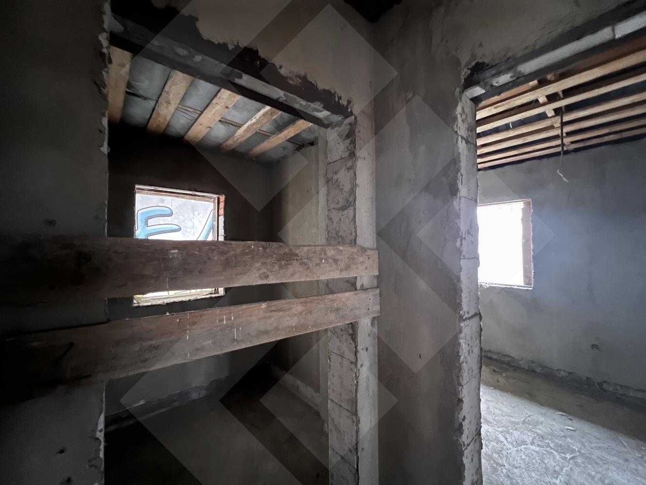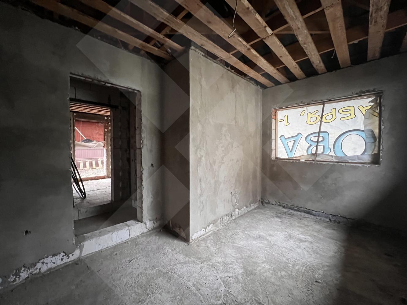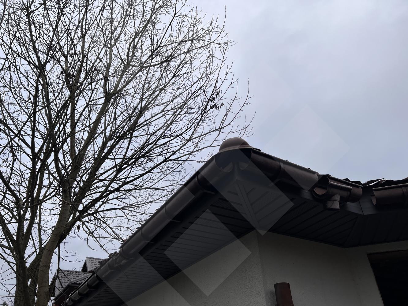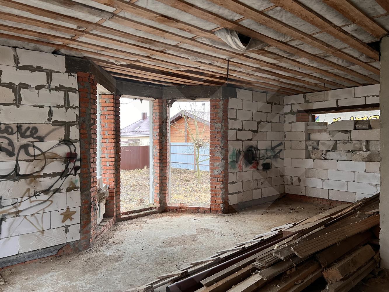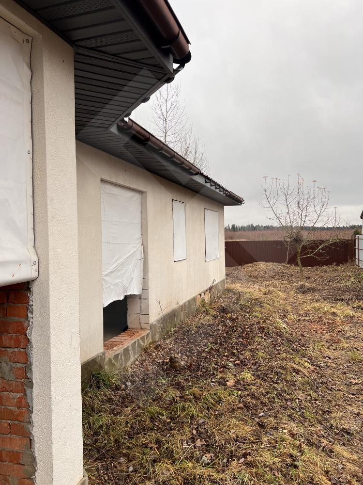 Забор профнастил. Здание на участке материал - газоблоки, крыша черепица.